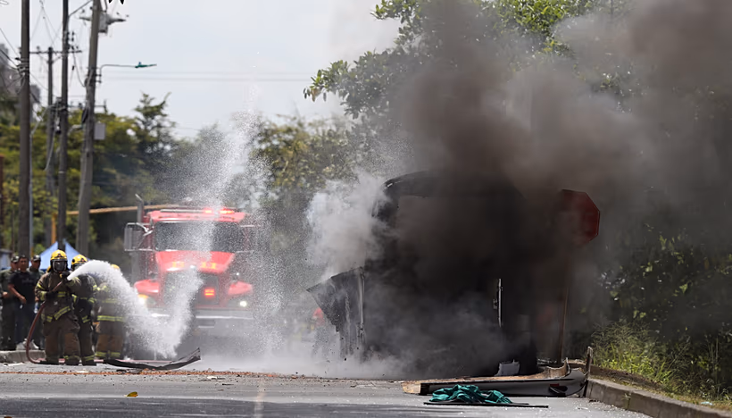 Testigos en el lugar relataron que un autobús quedó completamente calcinado a pocos metros de la instalación militar, mientras fuerzas del Ejército y la Policía acordonaban la zona y desplegaban un amplio operativo para garantizar la seguridad.