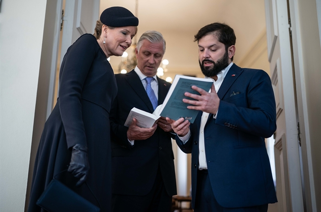 REDACCIÓN.- El presidente de Chile, Gabriel Boric, recibió este martes en el palacio de La Moneda (sede del Gobierno chileno) a los reyes de los Belgas, Felipe y Matilde, que realizan su primera visita de Estado al país con el objetivo de aumentar la cooperación bilateral en energía, minería y ciencia.