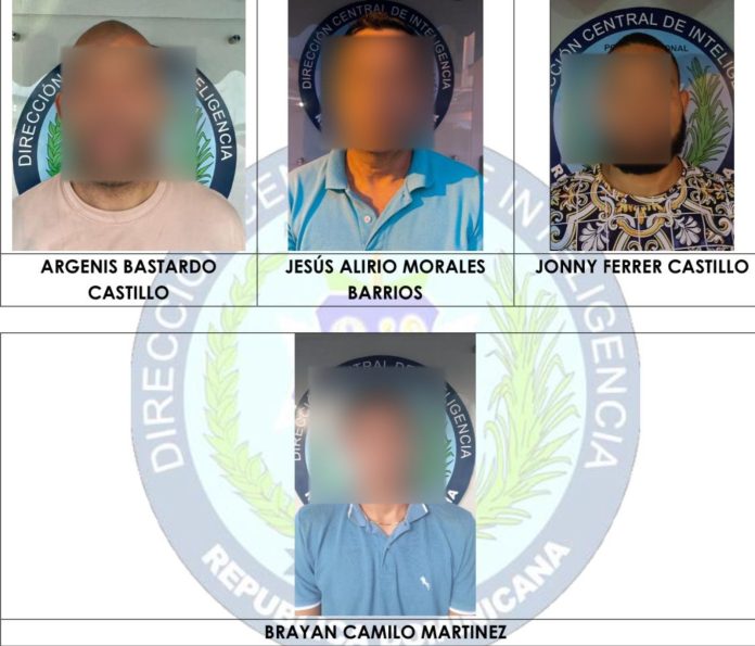 Los detenidos fueron identificados como Argenis Bastardo Castillo (43 años), Jonny Ferrer Castillo (32 años), y los ciudadanos colombianos Jesús Alirio Morales Barreiro (55 años) y Brayan Camilo Martínez (23 años). La intervención se realizó en cumplimiento de la orden judicial No. 530-2024-EMES-02451, en el apartamento 7B de la calle María Trinidad Sánchez.