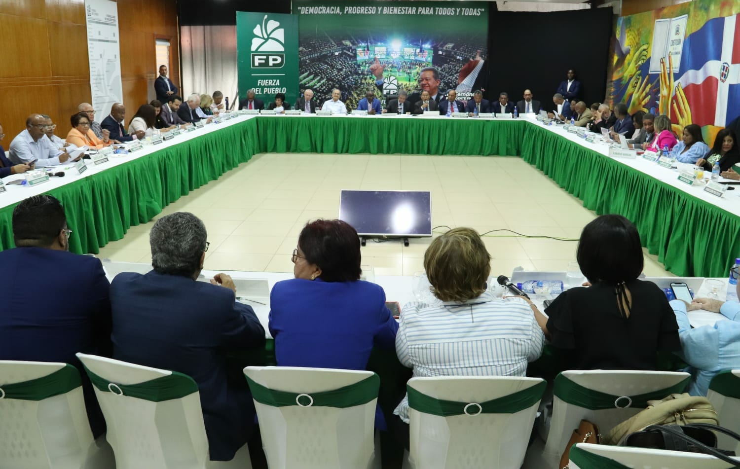 Santo Domingo. – La Dirección Política del partido Fuerza del Pueblo se reúne en la Casa del Partido Johnny Ventura. El encuentro es encabezado por su presidente, Leonel Fernández.