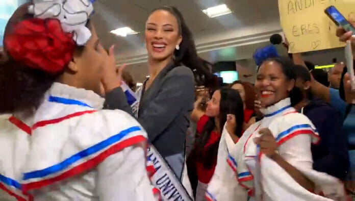 A ritmo de música típica y baile folclórico, la Miss República Dominicana Universo, Andreína Martínez Founier, llegó por el Aeropuerto Internacional de Las Américas (AILA), luego participar en el certamen Miss Universo 2022.