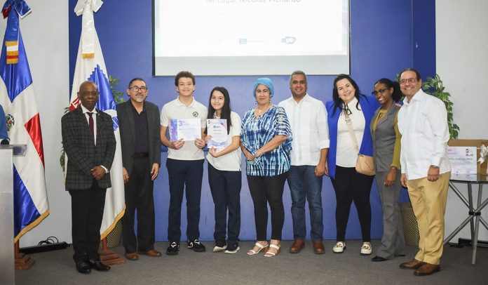 Los adolescentes: Wismerlyn Rachel Cueto Matías, del liceo Augusto Viloria, Santiago de los Caballeros; María Isabel Mateo Herrera, del Nuestra Señora de Fátima, Distrito Educativo 03-04, y Nicolás Emil José Pichardo García, del New Horizons, Santo Domingo.