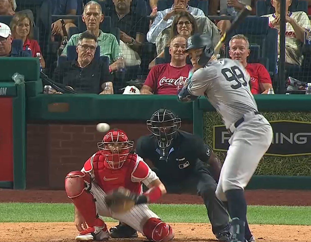 Judge se convirtió en el primer jugador en la temporada en pegar jonrón al sweeper del pitcher abridor de los Filis Zack Wheeler, lo que desató que los fanáticos de los Yankees corearan “¡MVP! ¡MVP!” después de su jonrón de la séptima entrada, que puso al frente 9-3 a su equipo.