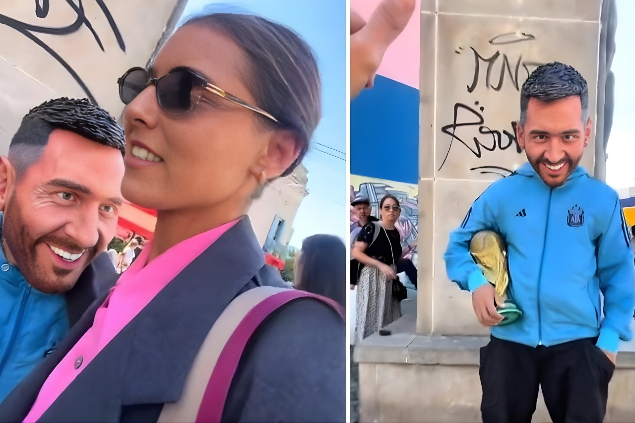REDACCIÓN.- Un hombre disfrazado de Lionel Messi sentado le dio un susto a una chica que lo confundió con una estatua.
