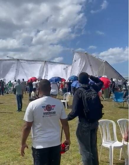 Una de las carpas principales no estaba anclada al piso, y el aire la levantó, hiriendo a varias personas.