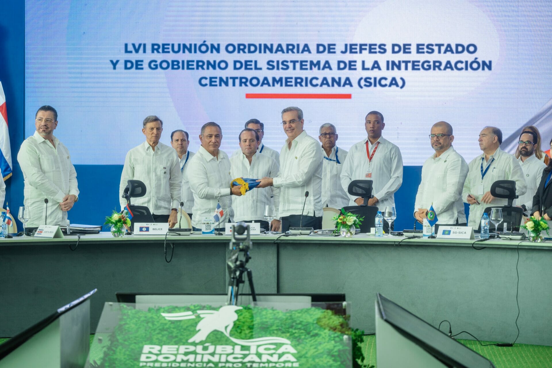 Al final de la reunión, el Presidente Abinader hizo el traspaso de la Presidencia Pro Tempore (PPT) del SICA al Primer Ministro de Belice, John Briceño, país que ocupará este puesto en el período enero-junio de 2023.