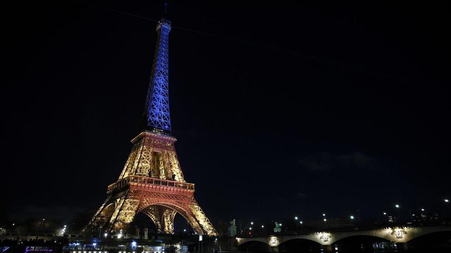 Torre Eiffel se ilumina con los colores de Ucrania por el cuarto aniversario de la guerra