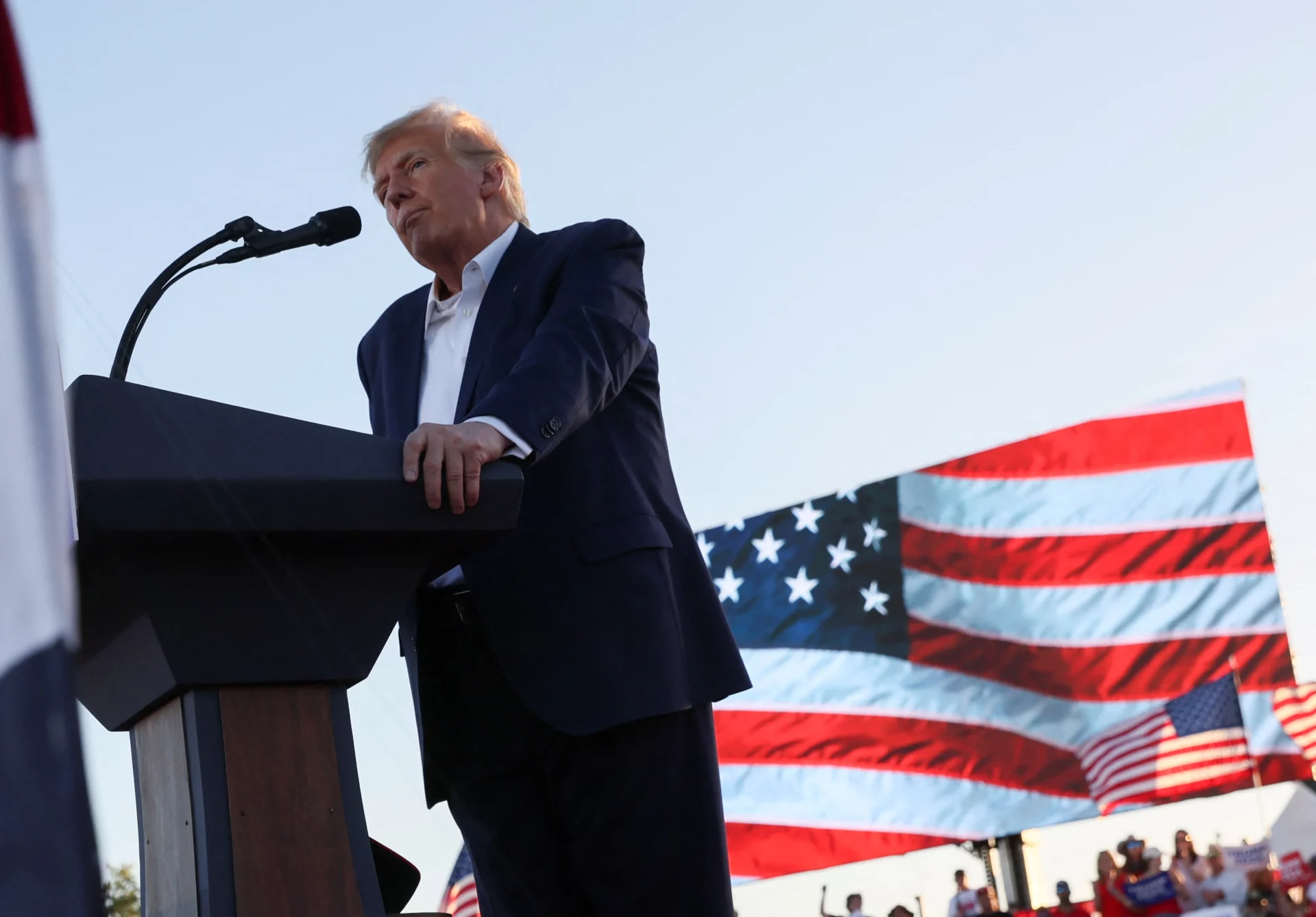 “Hoy somos testigos del abuso de poder más malvado y atroz de la historia de nuestro país. Algo muy triste de ver, un presidente en ejercicio corrupto hizo arrestar a su principal oponente político por cargos falsos e inventados de los que él y numerosos otros presidentes serían culpables. Justo en medio de una elección presidencial, en la que está perdiendo gravemente”, declaró Trump en el mitin.
